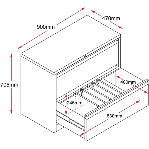 • Rapidline GO Lateral Filing  Cabinet 2 Drawer 705Hx900Wx473mmD Black