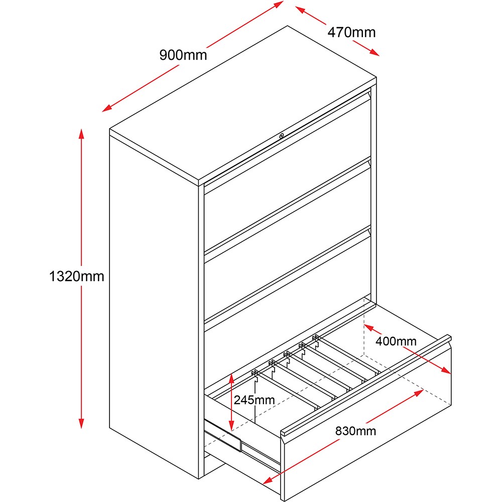 • Rapidline GO Lateral Filing  Cabinet 4 Drawer 1321Hx900Wx473mmD Black
