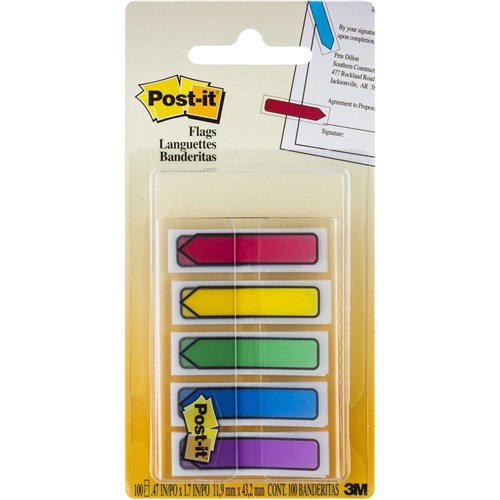 684-ARR1 POST-IT ARROWS BLUE GREEN PURPLE RED & YELLOW 12MM X 43.7MM PK100