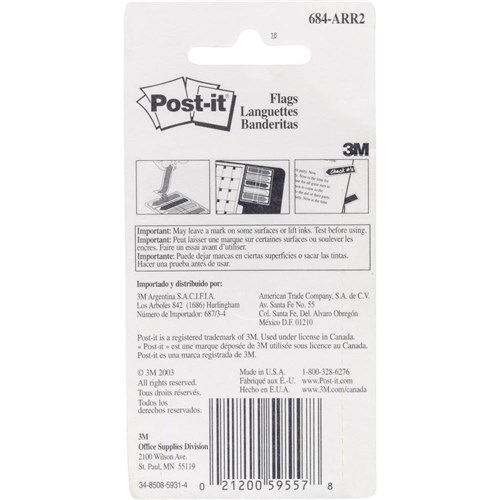 684-ARR2 POST-IT ARROWS - BRIGHT COLOURS BRIGHT - BLUE GREEN ORANGE PK100