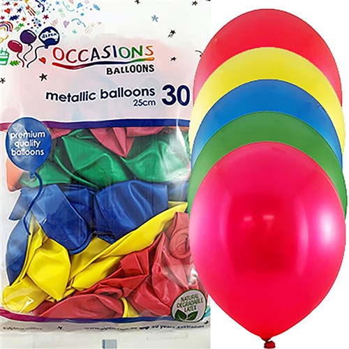 Alpen Balloons 25cm Metallic Assorted Colours Pack of 30
