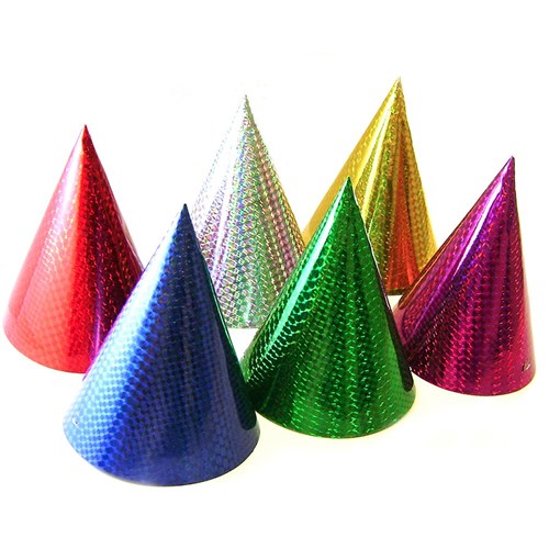 Alpen Birthday Party Hats Laser Cone Assorted Colours Pack of 6