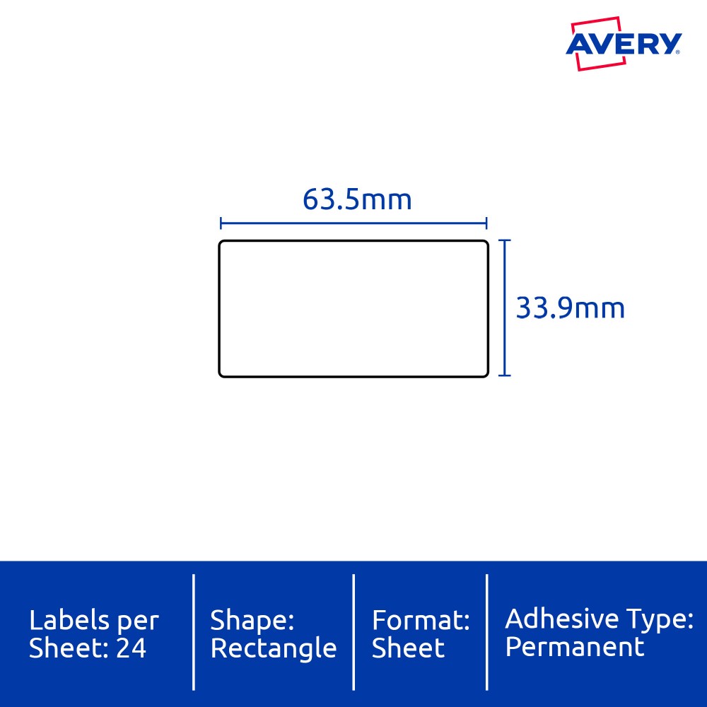 • Size: 63.5x33.9mm 240 labels, 10 sheets. 24 labels per sheet (24UP).
