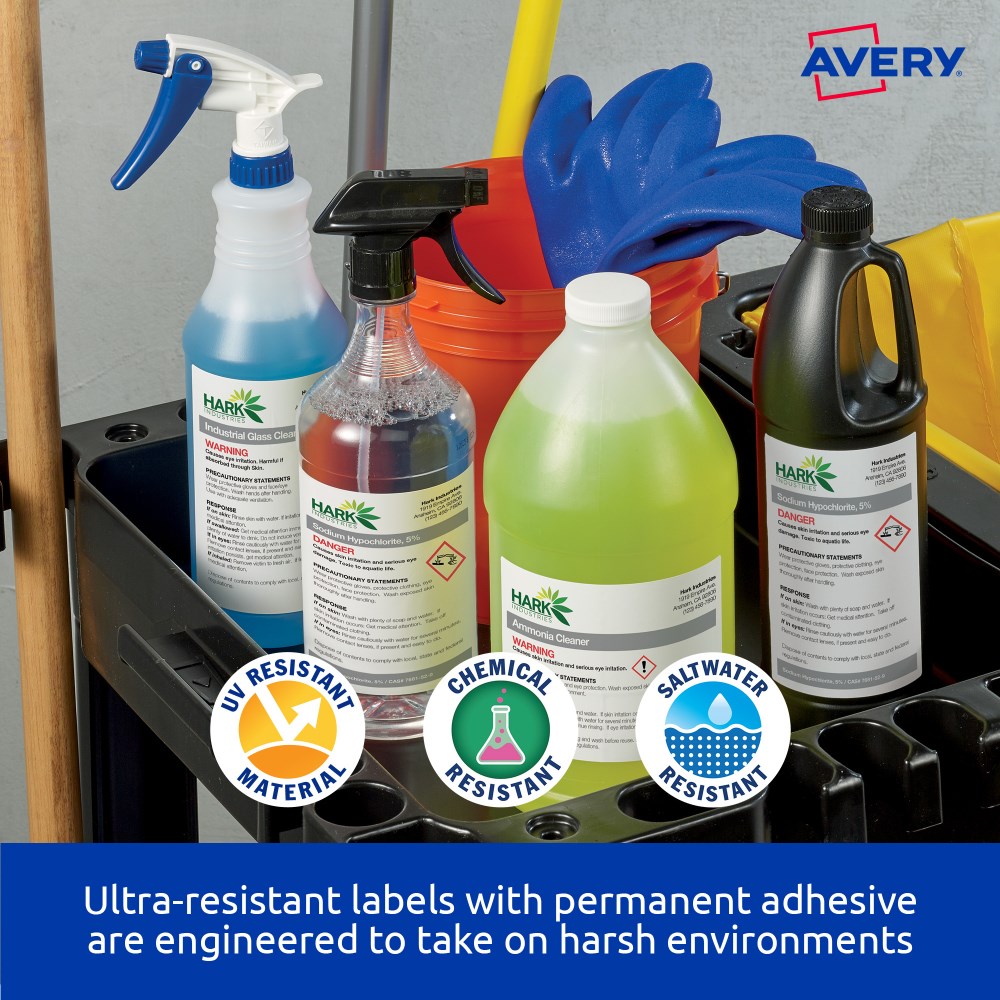 • Ultra-Resistant Labels are saltwater resistant and certified for GHS Chemical Labelling with permanent adhesive and engineered to take on harsh environments.