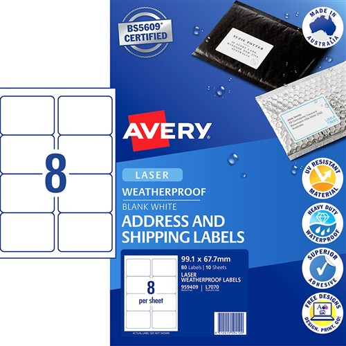 AVERY A4 SHIPPING LABELS L7070 8P/Sht Waterproof PKT10