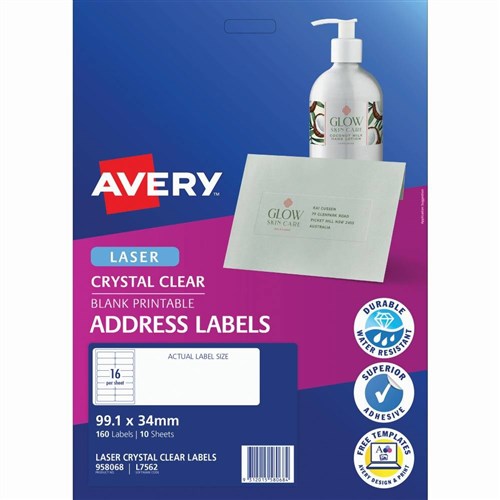 Avery Crystal Clear Laser Address Label 16UP 99.1x34mm 160 Labels 10 Sheets