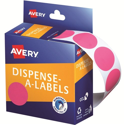 AVERY DISPENSER LABELS Circles DMC24P 24mm Pink PK500