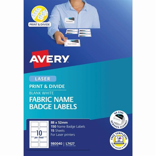 AVERY L7427 BADGE LABEL Fabric Name Badge 10up 88x52mm Pack of 15