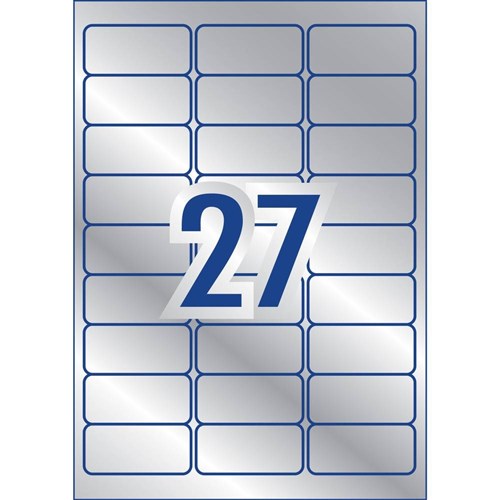 AVERY L6011 DURABLE H/D LABEL Laser 27/Sht 63.5x30 Slvr Met