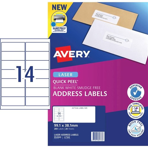 AVERY L7163 MAILING LABELS Laser 14/Sht 99.1x38.1mm PKT20