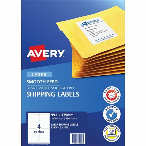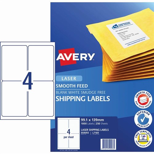 AVERY L7169 SMOOTH FEED LABEL Laser 4/Sht 99.1x139mm Wht Box 250 shts