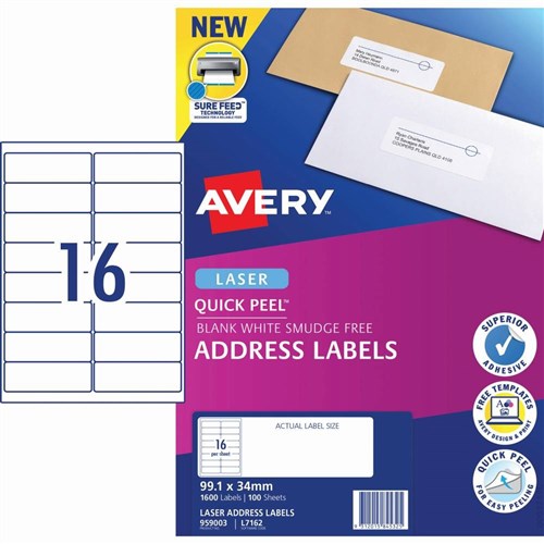 • Size: 99.1x34mm 1600 labels, 100 sheets. 16 labels per sheet (16UP).