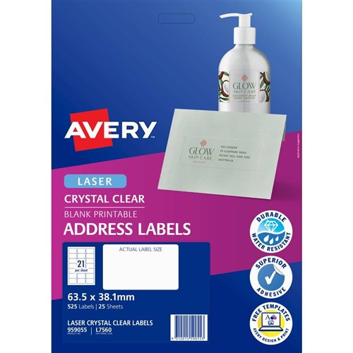 AVERY LASER LABELS L7560-25 CLEAR 21 PER SHEET PK25