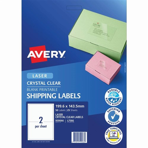 AVERY MAILING LASER LABELS L7168 2 L/P Sht 199.1x143.5mm Shipping - Crystal Clear Bx50