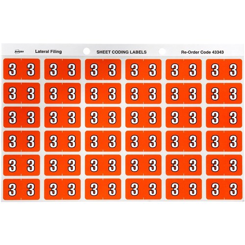 AVERY NUMERIC CODING LABEL 3 SIDE TAB 25mm x 38mm RED PACK 180