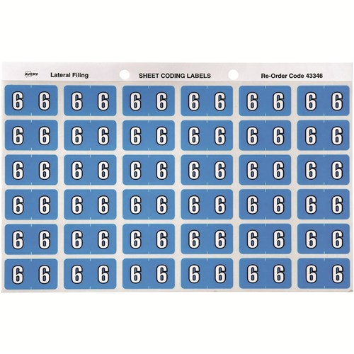 AVERY NUMERIC CODING LABEL 6 Side Tab 25x38mm Blue