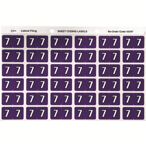 AVERY NUMERIC CODING LABEL 7 SIDE TAB 25 x 38mm PURPLE