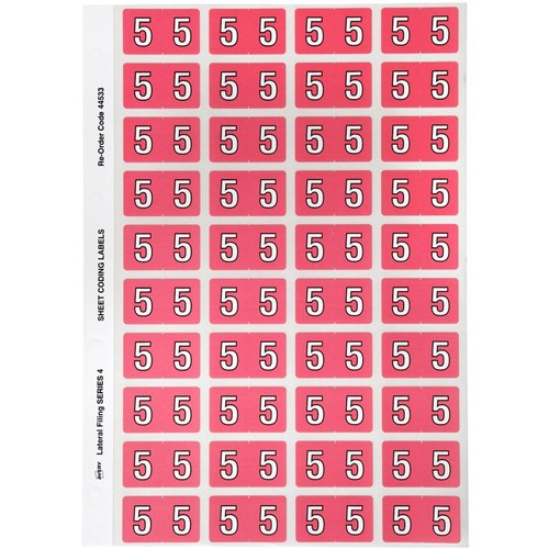 AVERY NUMERIC CODING LABEL "5" Side Tab 25x42mm Pink