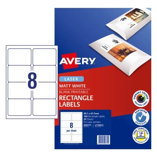 Avery Printable Labels L7165CL 99.1 x 67.7mm Rectangle Photo Matte White 8UP 160 Labels