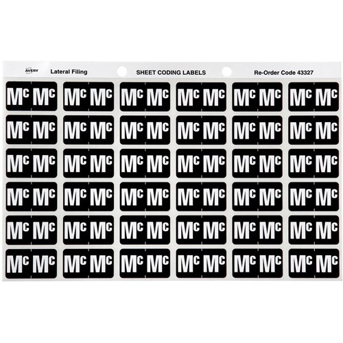 AVERY SHEET CODE LABEL "Mc" PKT