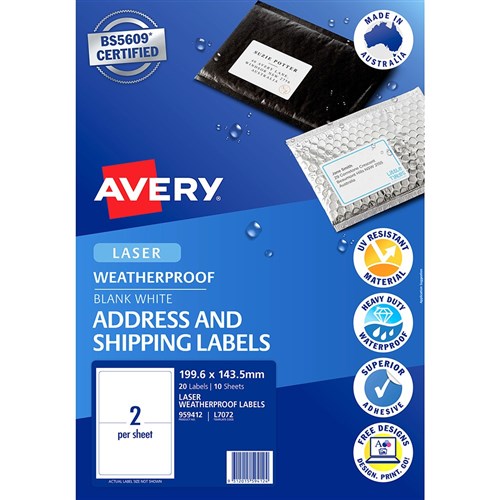 AVERY WEATHER PROOF LABELS Laser 199.6 x 143.5mm White Pack of 10SHTS