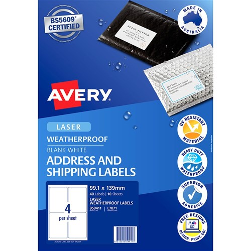 AVERY WEATHER PROOF LABELS Laser 199.6 x 289.1mm White Pack of 40