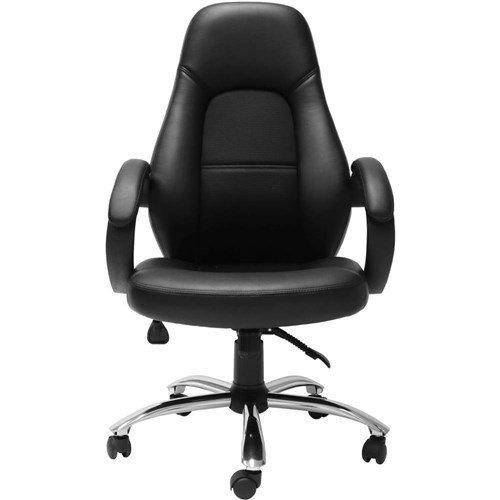 • Executive high back chair with fabric inlay for extra comfort, chrome base and upholstered arms.