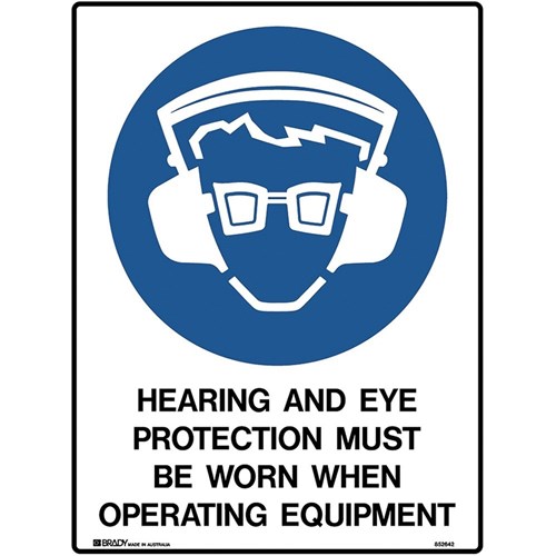 BRADY MANDATORY SIGN Hearing and Eye 450x600mm Metal