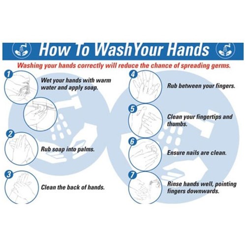 Brady PVC Wall Poster How To Wash Your Hands Step Guide H420xW600mm Semi-Rigid
