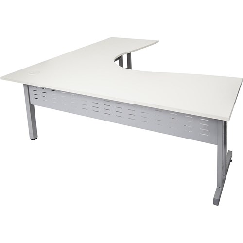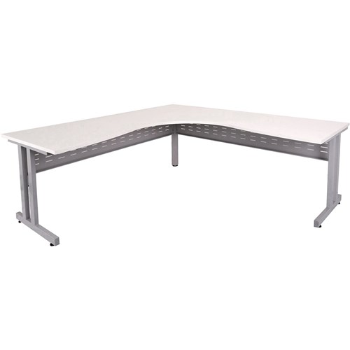 C Leg Cockpit Corner Desk 1500Wx1500Wx700D White Top Silver Steel Frame