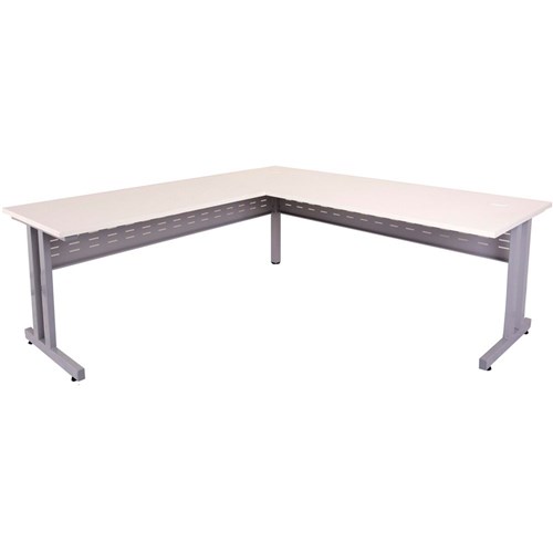 C Leg Desk With Return Desk 1800Wx700D Return 1100Wx600D White Top Silver Steel Frame