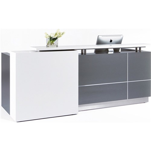 Calvin Reception Counter 2500Wx950Dx1150mmH Metallic Grey/Matte White
