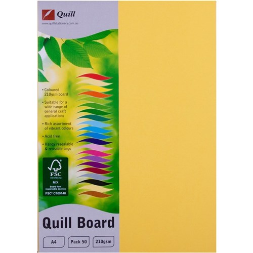 CARD- QUILL A4 XL BOARD 210GSM LEMON PKT