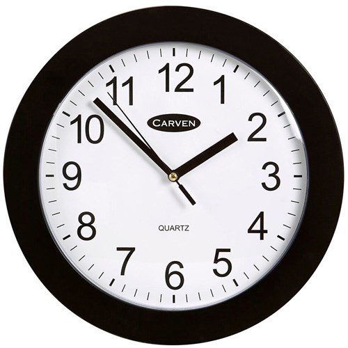CARVEN WALL CLOCK 250mm Plastic Frame Black
