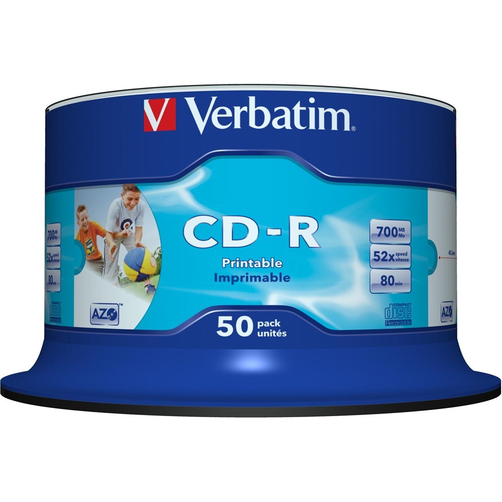 CD-R 80 MIN WHITE IJ PRINTABLE 50 PK 52X VERBATIM