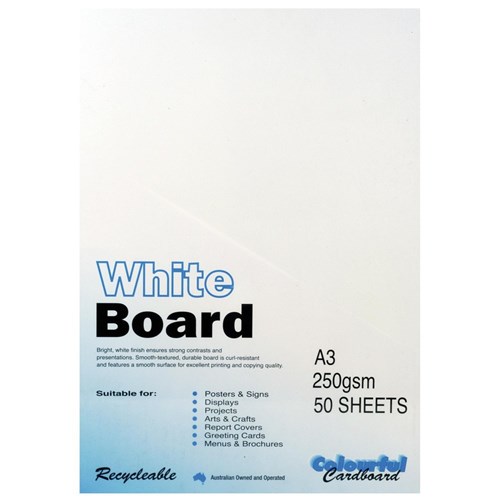 COLOURFUL CARDBOARD WHITE BOARD A3 250GSM - 4 SHEET PK100