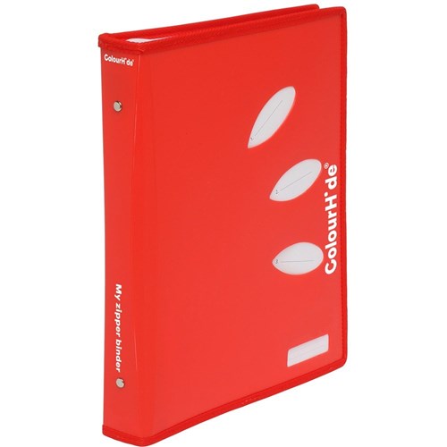 COLOURHIDE MY ZIPPER A4 BINDER 2D 25MM Red