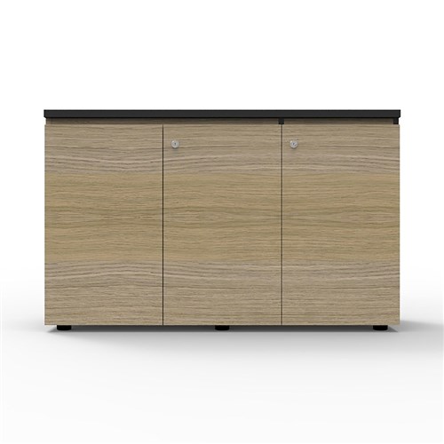 DELUXE INFINITY SWING DOOR CUPBOARD 1500W x 450D x 730H NATURAL OAK WITH BLACK