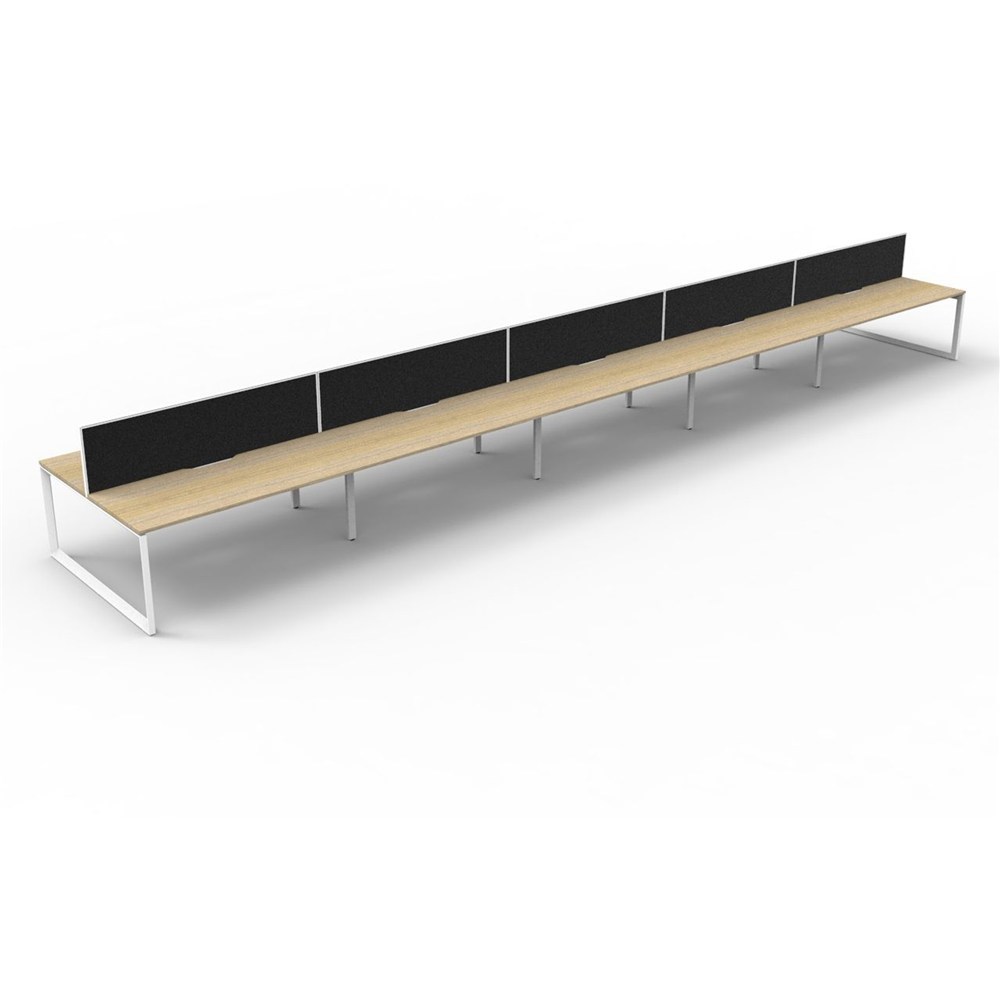 Deluxe Loop Workstation 10 Person With Screen 1200Wx750D Oak Top White Double Frame