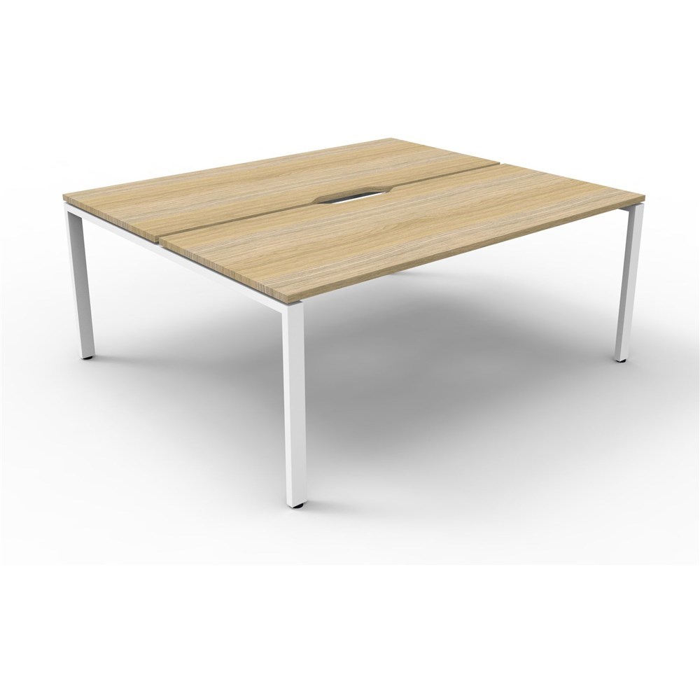 Deluxe Loop Workstation 2 Person No Screen 1500Wx750D Oak Top White Double Frame