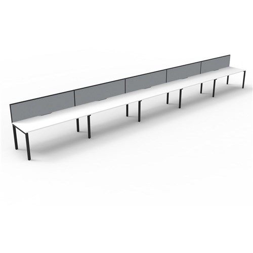 Deluxe Profile Workstation 5 Person With Screen 1200Wx750D White Top Black Single Frame