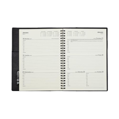 • Ideal for those 'on the move' with its double wiro binding and heavily grained metallic and matt PU cover.