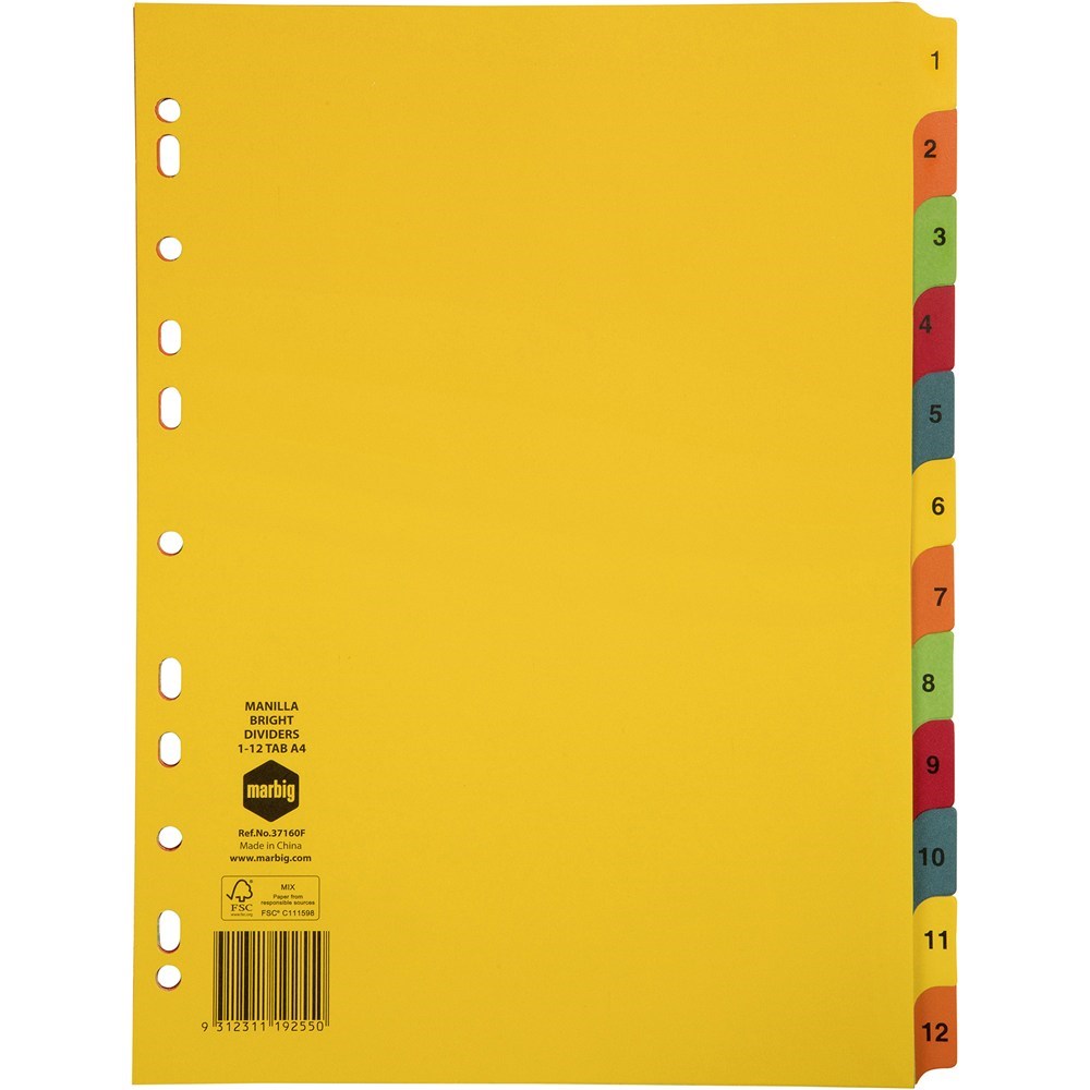 DIVIDERS A4 1-12 TAB MANILLA BRIGHT SET