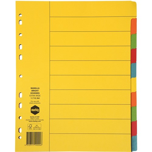 DIVIDERS A4 10TAB MAN BRIGHTS EXTRA WIDE