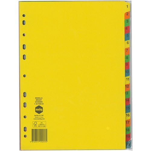 DIVIDERS A4 20 TAB MANILLA BRIGHT SET