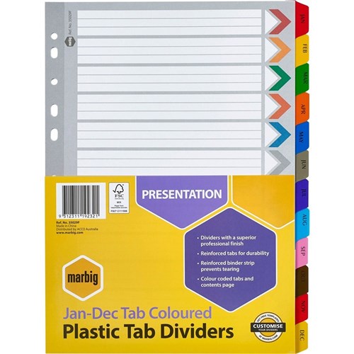 DIVIDERS A4 JAN-DEC REINF TAB SET PP ASST