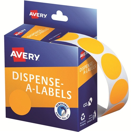 DMC24FO DISPENSER LBL FLOURO ORANGE CIRCLE LABELS