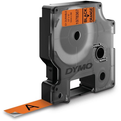 DYMO D1 LABEL CASSETTE TAPE DURABLE 12MM x 3M Black on Orange