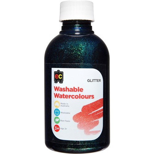 EC WASHABLE WATERCOLOUR PAINTS 250ml Glitter Black