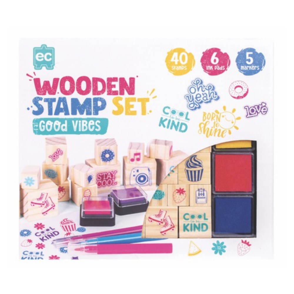 Educational Colours Wooden Stamp Set Good Vibes